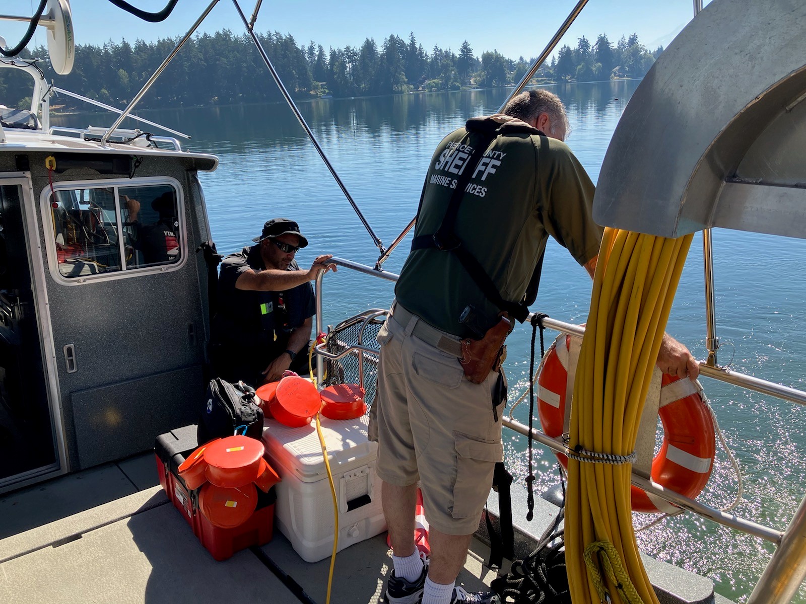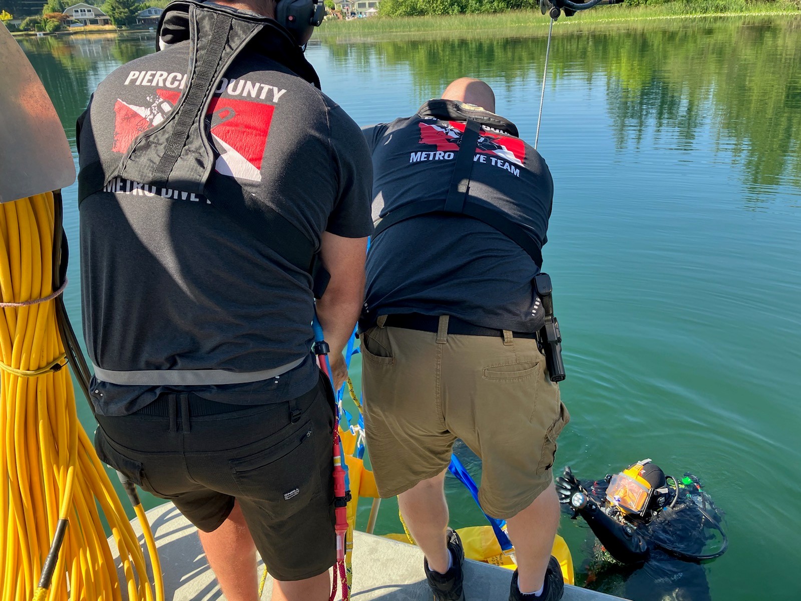 At 5:03 pm, on Friday July 29th, dispatchers received a phone call of a drowning at Spanaway Lake Park. A 69 year old male went into the water from the boat to fix the propeller. Witness stated that he did not come back up and after a few minutes they called 911. The Pierce County Metro Dive Team and Marine Services Unit responded to the scene. Two divers were sent in for the rescue attempt but with a difficult last seen point and minimal visibility they were unable to locate him in their initial search.